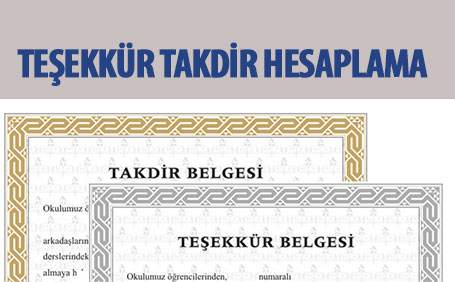 7. Sınıflar için E-okul Teşekkür ve Takdir Hesaplama için tıklayınız