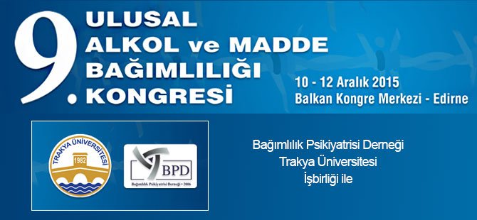 Bu yıl 9. Ulusal Alkol ve Madde Bağımlılığı Kongresi’ nde, alkol ve madde kullanım bozuklukları alanında kanıta dayalı bilgiler ile önleme, tedavi ve rehabilitasyon başlıklarını tartışmak istiyoruz. Kendi uygulamalarımızı, deneyimlerimizi bu bilimsel tema çerçevesinde paylaşmak için sizleri 2015 Aralık ayında Edirne' ye Ulusal Bağımlılık Kongresi’ ne katılmaya ve katkı yapmaya davet ediyoruz.