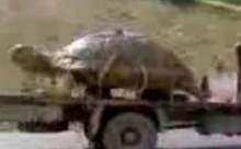 Kamyon ağırlığındaki 6 tonluk dev kaplumbağa görenleri hayrete düşürdü. Kaplumbağa, vinç yardımıyla kamyona yerleştirip önce Diyarbakır'a oradan İzmir'e gönderildi.