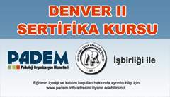 Padem (Psikoloji Aile Danışmanlık & Eğitim Merkezi) ve Gelişimsel Çocuk nörolojisi Derneği işbirliği ile "Denver 2 Gelişimsel Tarama Testi Uygulayıcı Yetiştirme Sertifika Kursu" 24 - 25 Aralık 2011'de başlıyor... Eğitimle ilgili Padem (Psikoloji Aile Danışmanlık & Eğitim Merkezi)'nin web sitesinde yer alan bilgilendirme duyurusunun ayrıntıları şöyle: