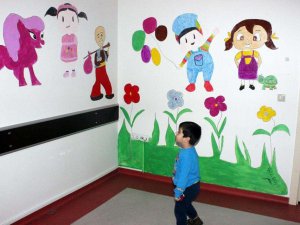 Çocukların tedavi süresince hastane ortamından olumsuz etkilenmemesi için çaba harcayan hastane yönetimi, sağlık kuruluşunun duvarlarını çocukların sevdiği çizgi film karakterlerinin resimleriyle süsledi. Boyama işlemine tedavi için hastaneye gelen bazı çocuklar da yardımcı oldu.