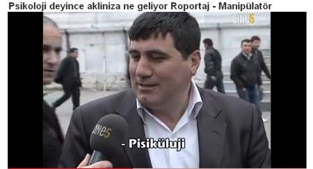 Cine5'te yayımlanan Manipülatör programının Muhabiri Hakan Mengüç, sokakta psikolojinin nabzını tuttu. "Psikoloji Nedir" sorusuna çok komik cevaplar aldı. İşte videonun ayrıntıları...