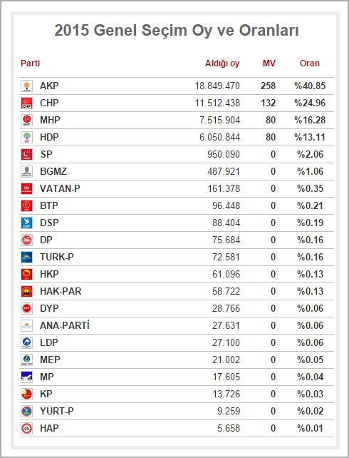 7 Haziran 2015 Türkiye Geneli Seçim Sonuçları