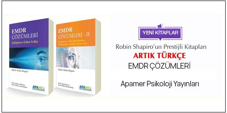 Dünya çapında tanınan EMDR (Göz Hareketleriyle Duyarsızlaştırma ve Yeniden İşleme) uzmanı Robin Shapiro'nun kapsamlı "EMDR Çözümleri" kitapları, Türk okuyucularıyla buluşuyor. Çevirmenliğini Klinik psikologlar Ayşenur Aldırmaz ve Klinik Psikolog Feyza Durmuş'un üstlendiği kitapların Editörlüğünü Avrupa EMDR Enstitüsü Akrediteli Süpervizöt Uzm. Psk. Dan. Derya Altınay üstlendi.