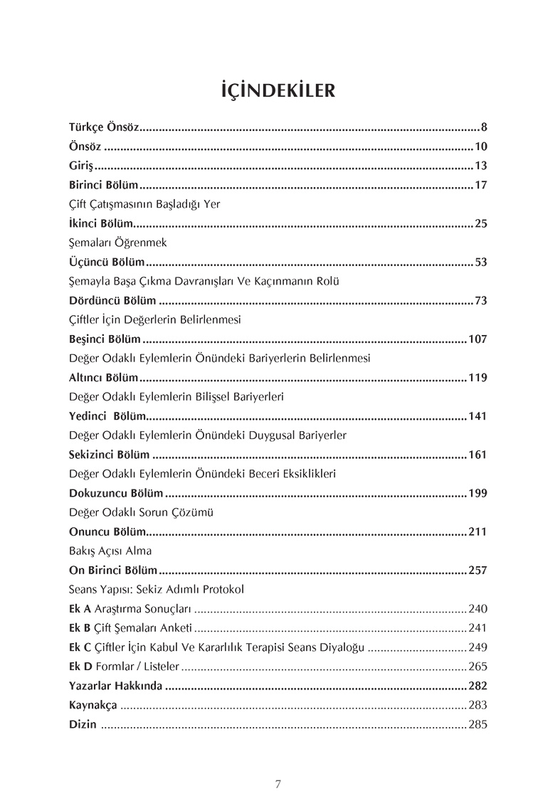 ÇİFTLER İÇİN KABUL VE KARARLILIK TERAPİSİ İÇİNDEKİLER SAYFASI