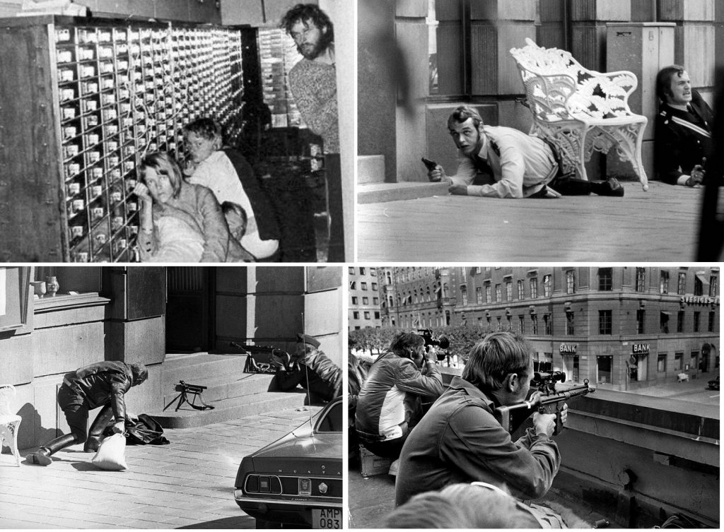 Olay 23 Ağustos 1973 günü Jan Erik Olsson’un Stockholm’un Normalmstorg semtinde bir banka şubesine girmesiyle başladı. Saat 10:03’te banka şubesine giren soyguncu, silahını çekip elindeki patlayıcıları da havaya kaldırarak “Hepiniz yere yatın parti başlıyor” diye bağırdı ve tavana da birkaç el ateş etti. Müşterilerin ve bu arada bazı memurların dışarıya kaçmasına göz yuman sıyguncu üç banka memuresini esir aldı.