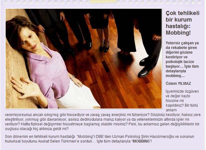 Yetersiz çalışan ya da rekabete giren diğerini gözüne kestiriyor ve psikolojik tacize başlıyor… İşte tüm detaylarıyla mobbing…