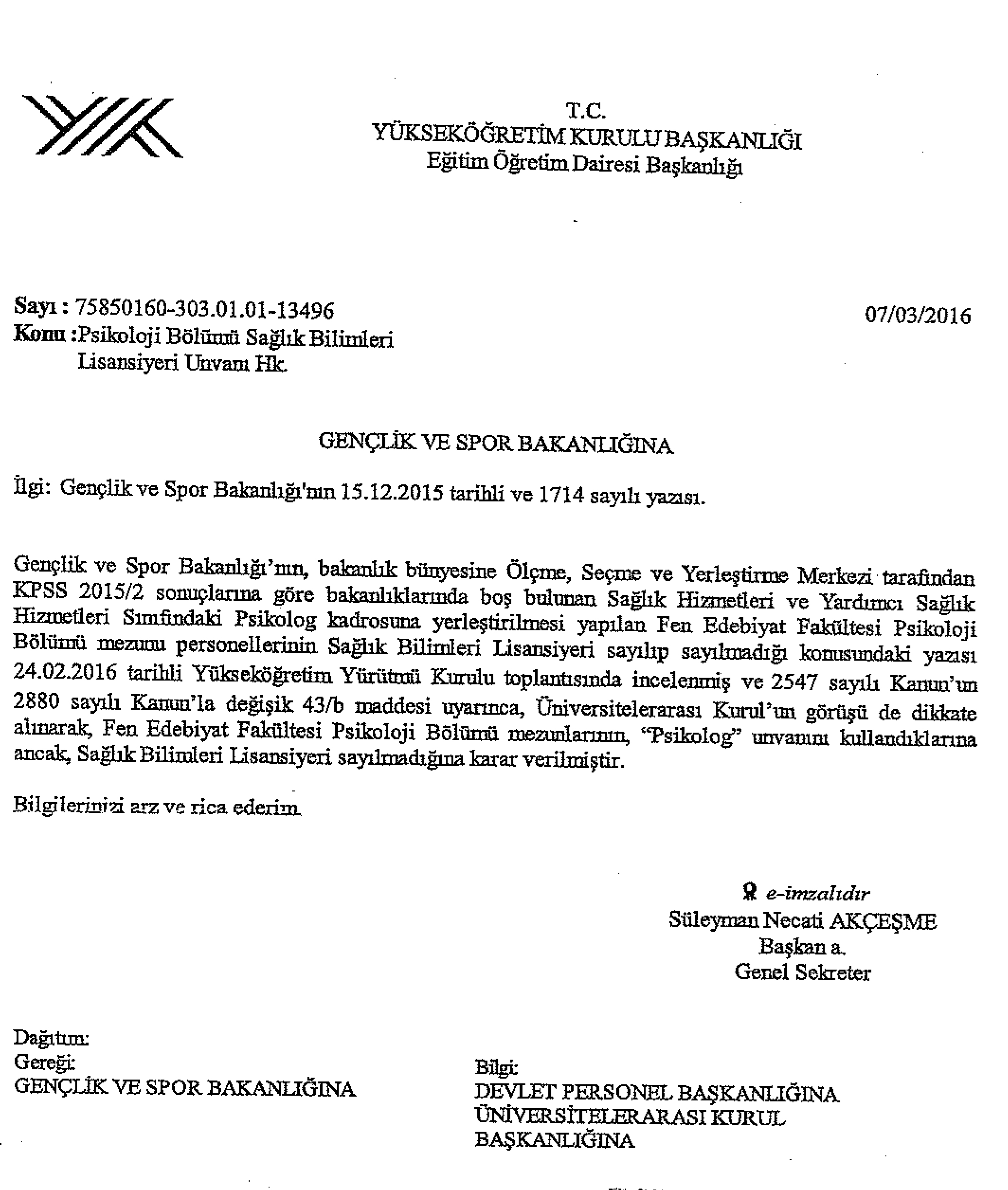Üniversiteler Arası Kurul (ÜAK), tam 26 yıl sonra, 1990 yılında verdiği görüşü değiştirdi. ÜAK, 1990 yılında, Fen Edebiyat Fakülteleri'nden psikolog olarak mezun olanların sağlık bilimi lisansiyeri sayılması gerektiğine karar vermişti. Bu görüş doğrultusunda da haklarında, 657'nin 36. maddesi hükmü gereğince bir derece uygulanması gerektiği bildirilmişti.