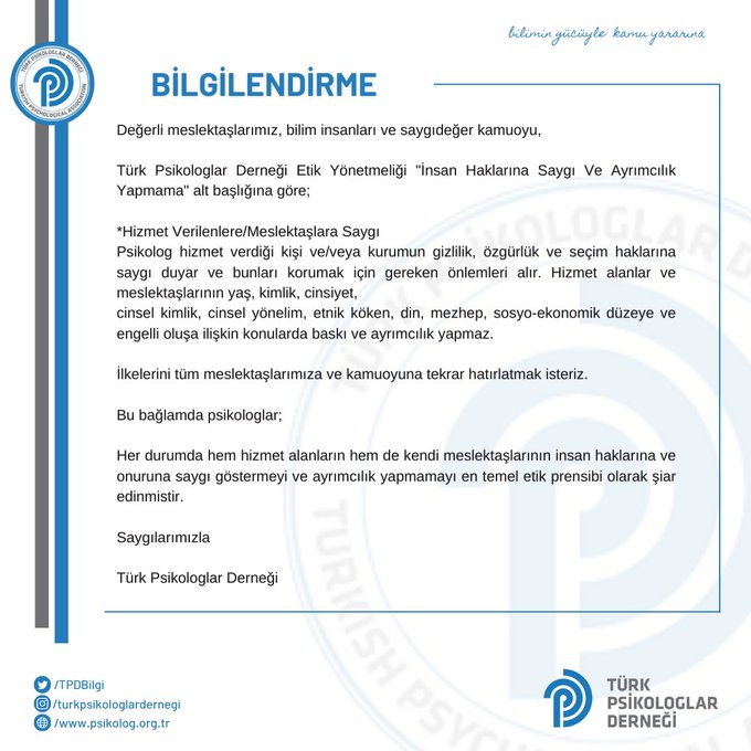 TÜRK PSİKOLOGLAR DERNEĞİNDEN TEPKİ